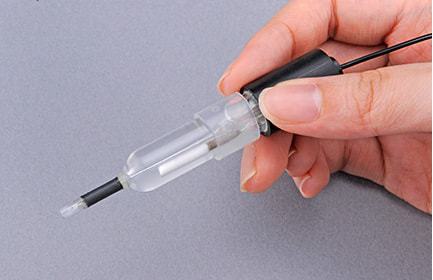 ニードル型電極は単極電極のため、比較電極が必要ですが試料が極小・微量である場合、比較電極で直接試料に触れられないため、塩橋を媒体にしてpH測定することも可能です。